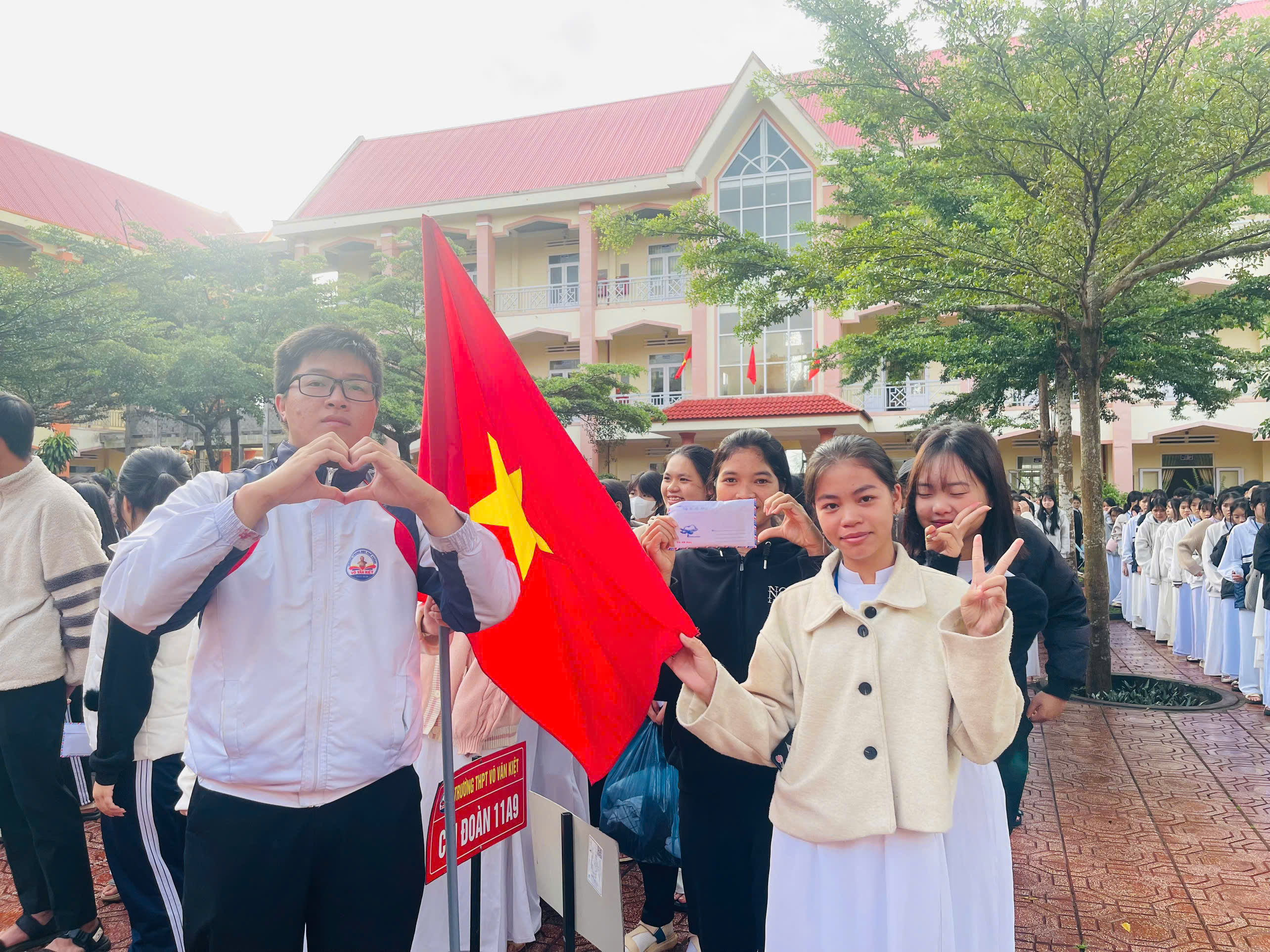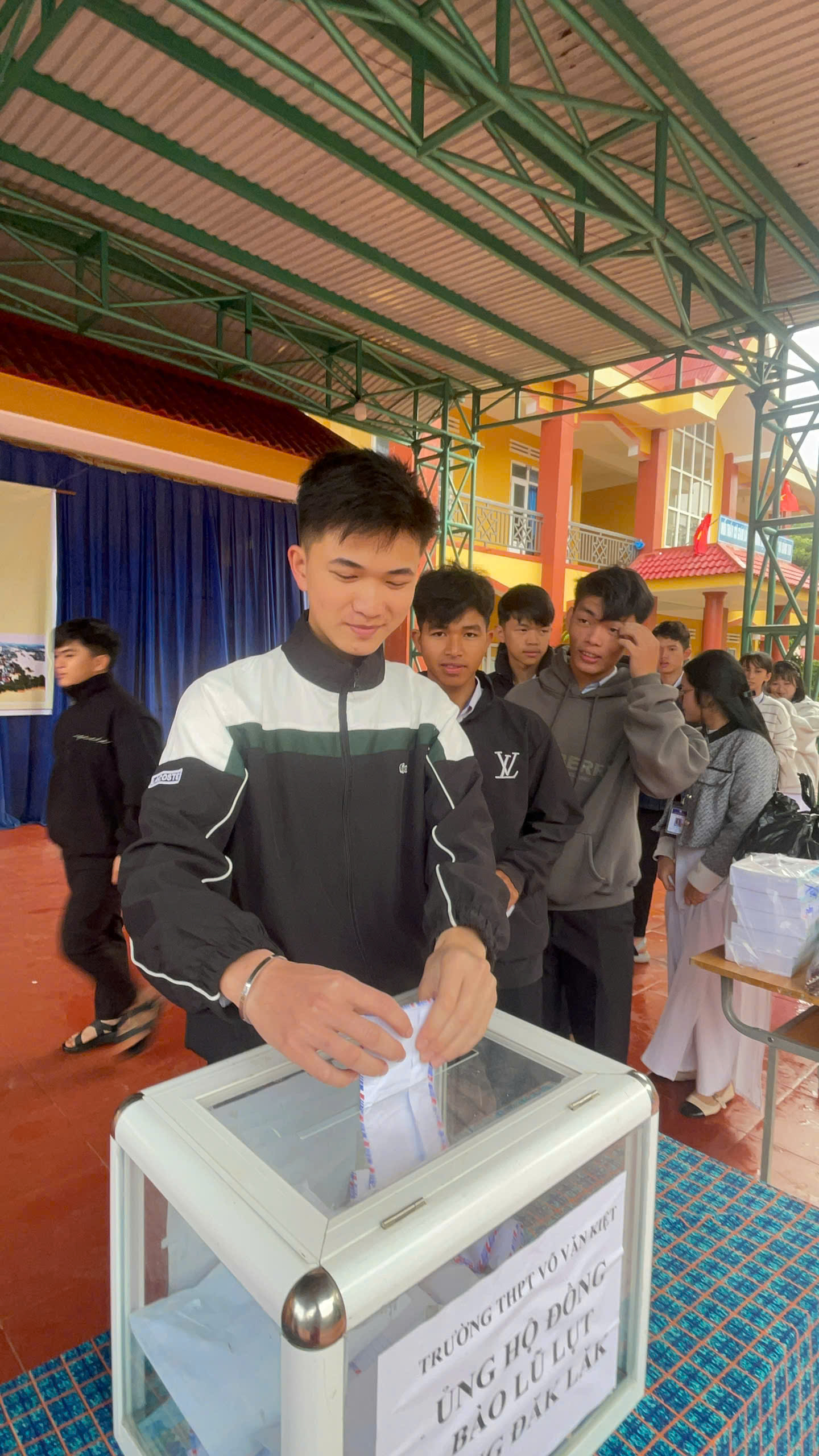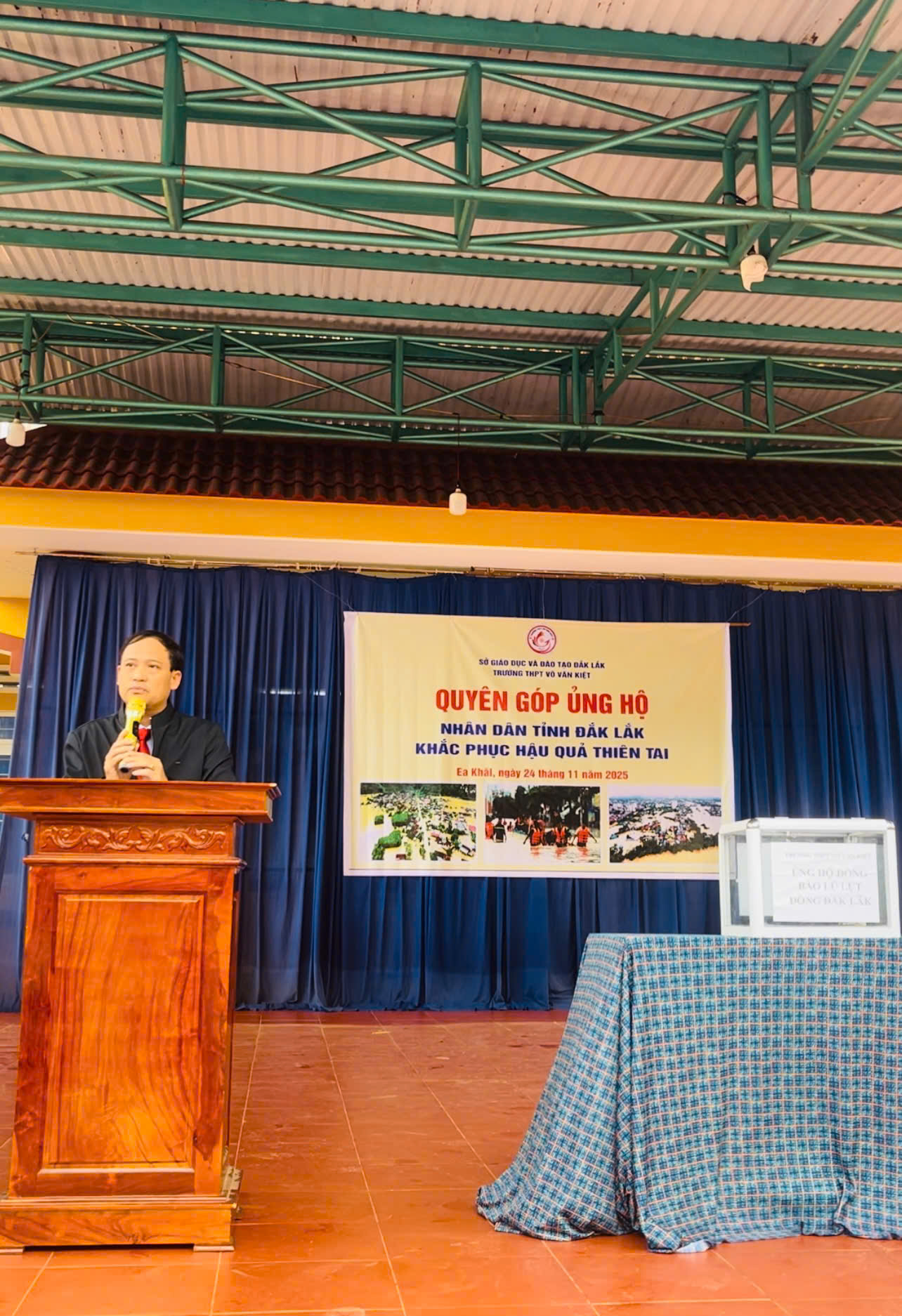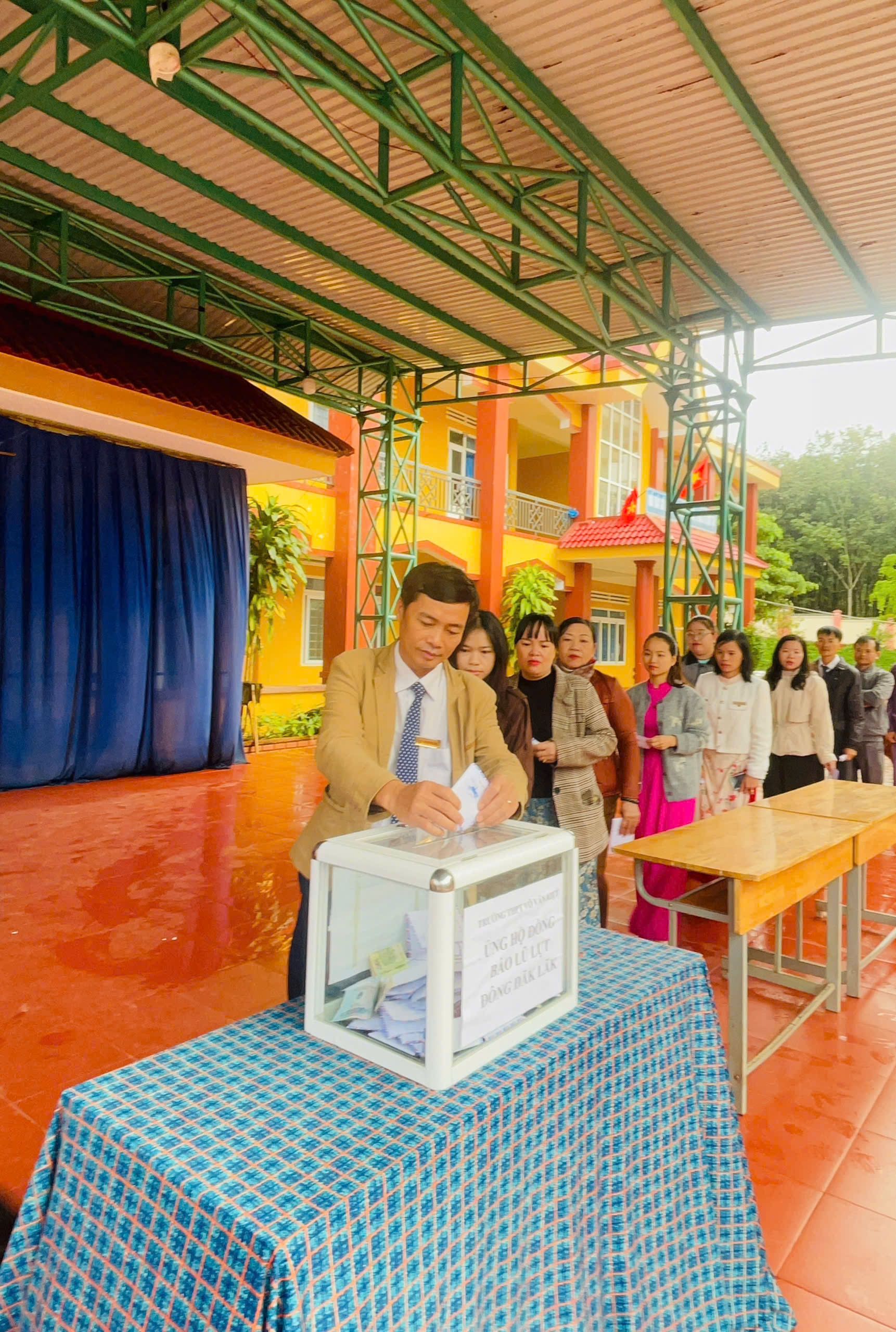 Cán bộ, giáo viên, nhân viên và học sinh trường THPT Võ Văn Kiệt ủng hộ đồng bào phía Đông tỉnh Đắk Lắk bị thiên tai lũ lụt