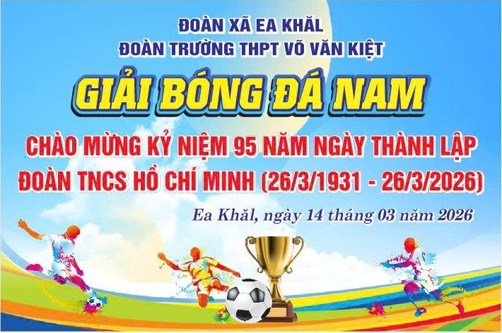 Chào mừng 95 năm Ngày thành lập Đoàn TNCS Hồ Chí Minh (26/3/1931 – 26/3/2026), đồng thời tạo sân chơi lành mạnh, tăng cường tinh thần đoàn kết và rèn luyện thể chất cho đoàn viên, thanh niên, Đoàn trường THPT Võ Văn Kiệt đã tổ chức Giải bóng đá nam năm học 2025 – 2026.