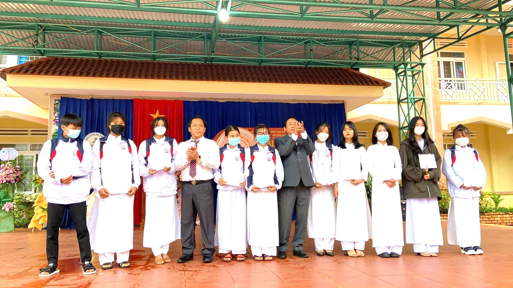 Đ/c Bun Thó Lào TUV nguyên Bí thư huyện ủy Ea H’Leo trao quà cho học sinh hiếu học có hoàn cảnh khó khăn