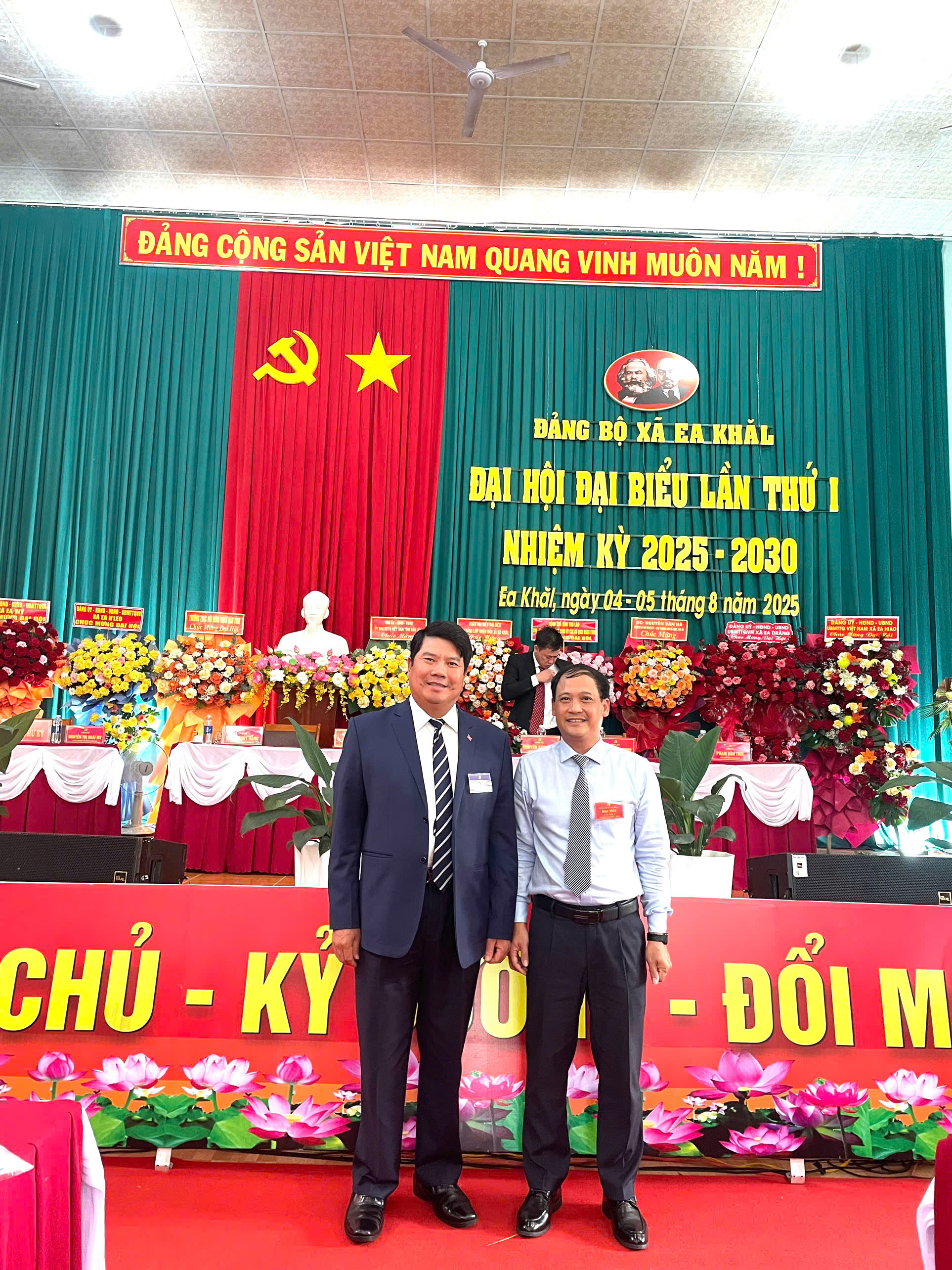 Đ/c Nguyễn Văn Hà nguyên Bí thư huyện ủy nguyên Chủ tịch UBND huyện Ea H’Leo cùng thầy Trần Đình Thao tại đại hội Đảng bộ xã Ea Khăl nhiệm kì 2025-2030
