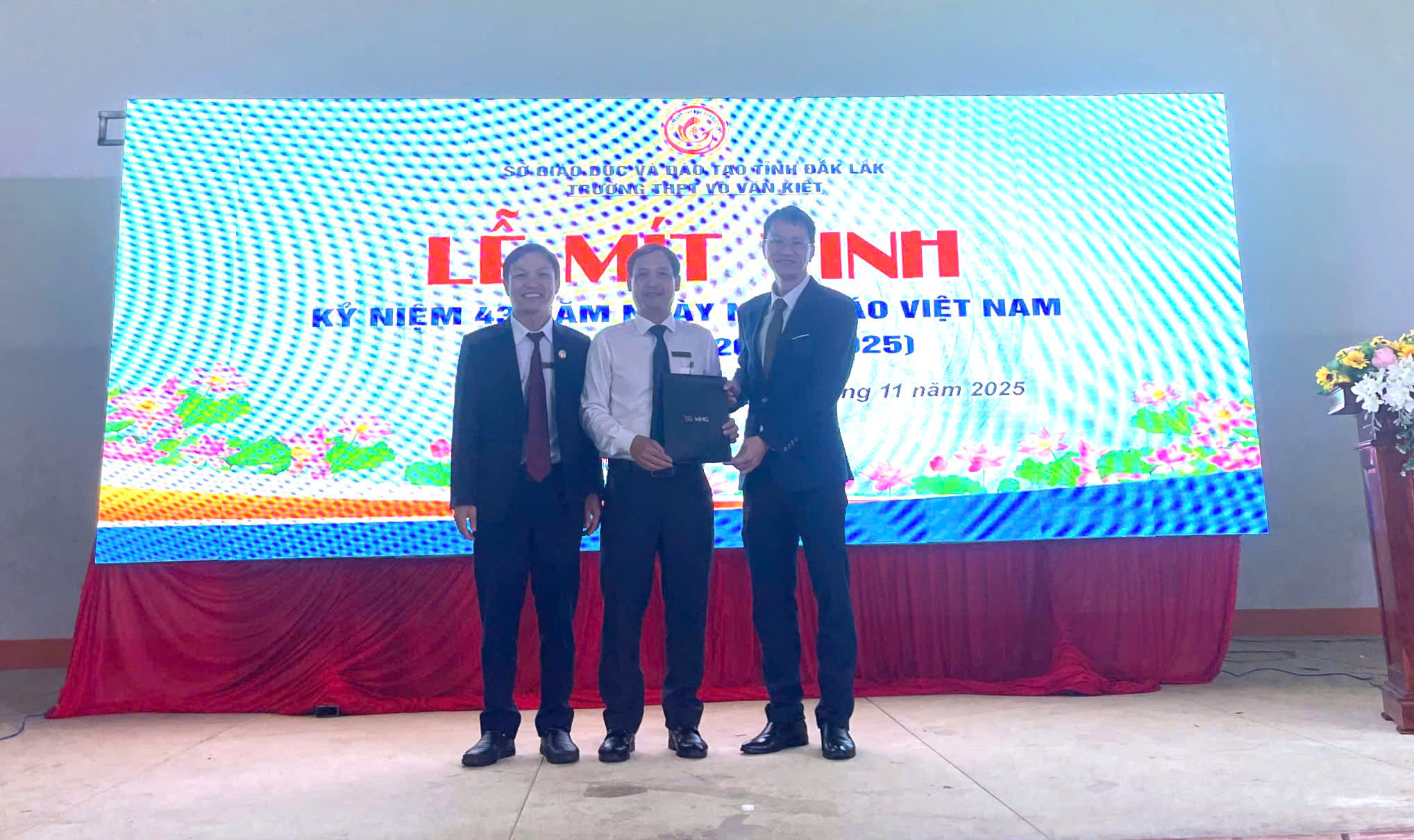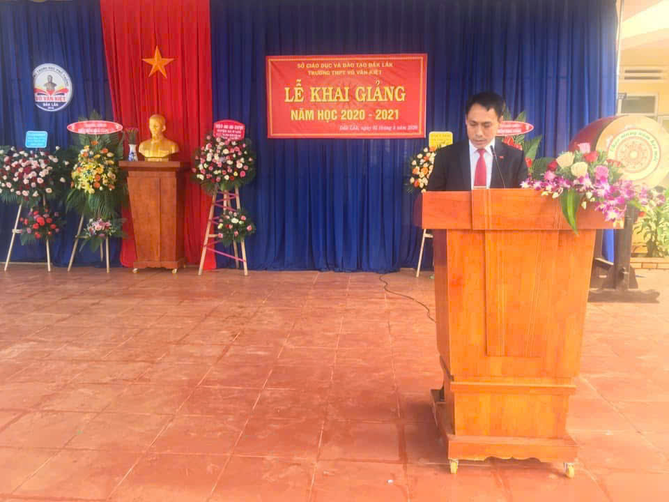 Đ/c Nguyễn Đức Thịnh Phó bí thư Đảng ủy Chủ tịch UBND xã Ea Khal tại lễ mitinh kỷ niệm 43 năm ngày nhà giáo Việt Nam 20/11/2025