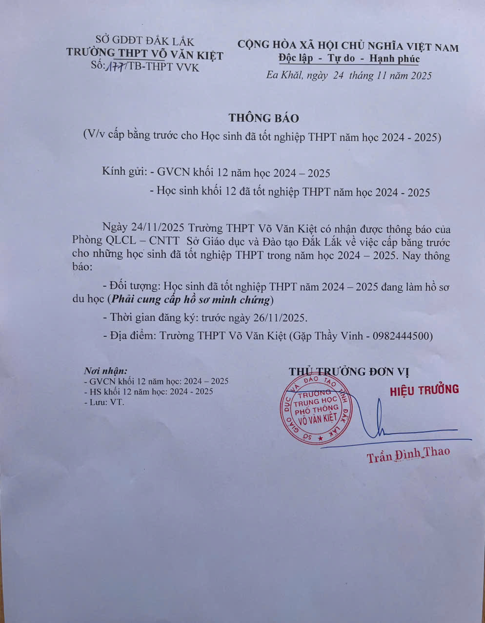Thông báo nhận bằng TN THPT năm 2025 sớm